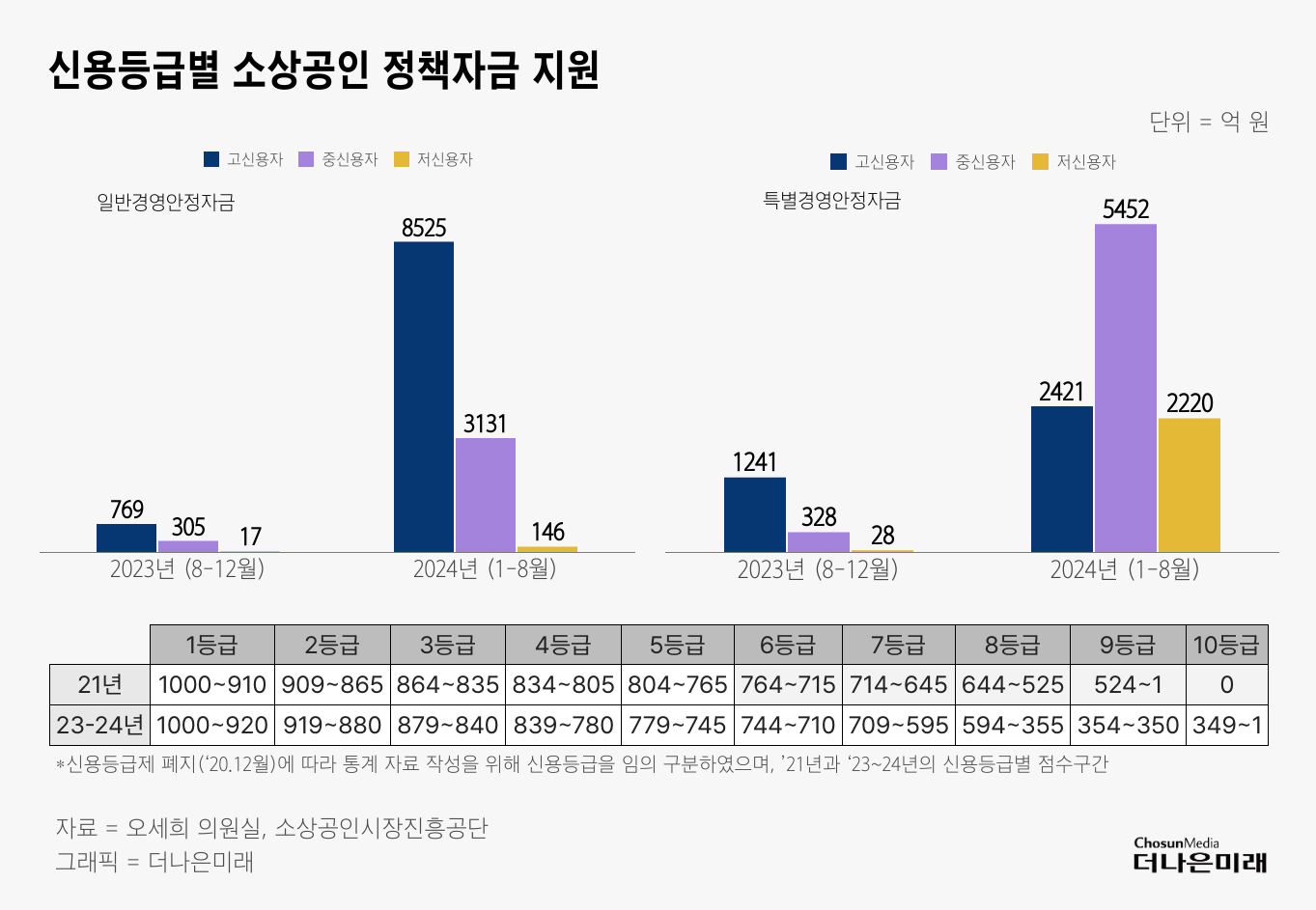 기관별 자금 조건 비교표