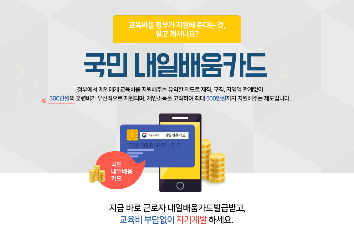 - 정부가 훈련비의 최대 100%를 지원하는 제도