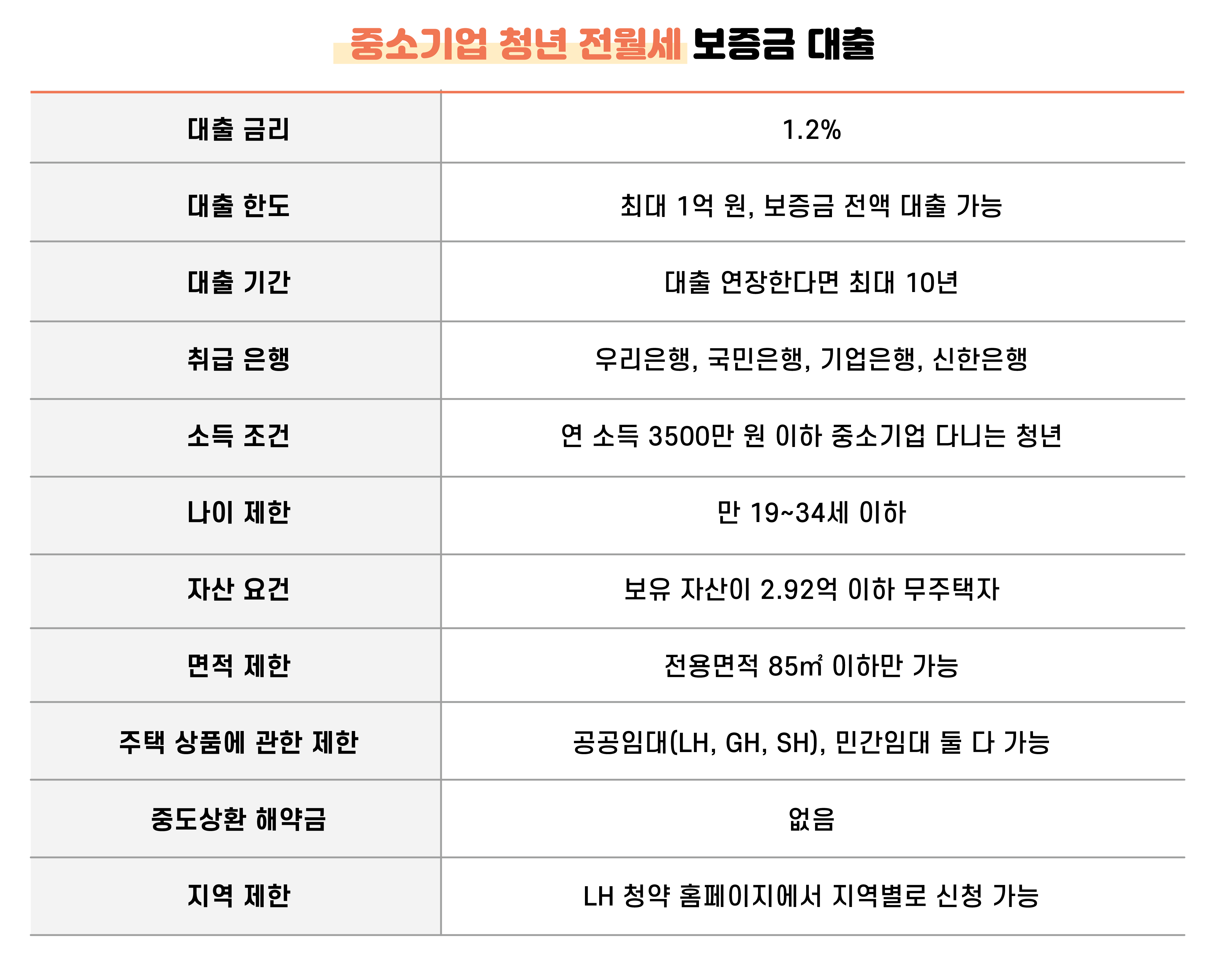 • 중복 수혜 불가: 기존 전세자금 대출이나 공공임대 거주자는 제외