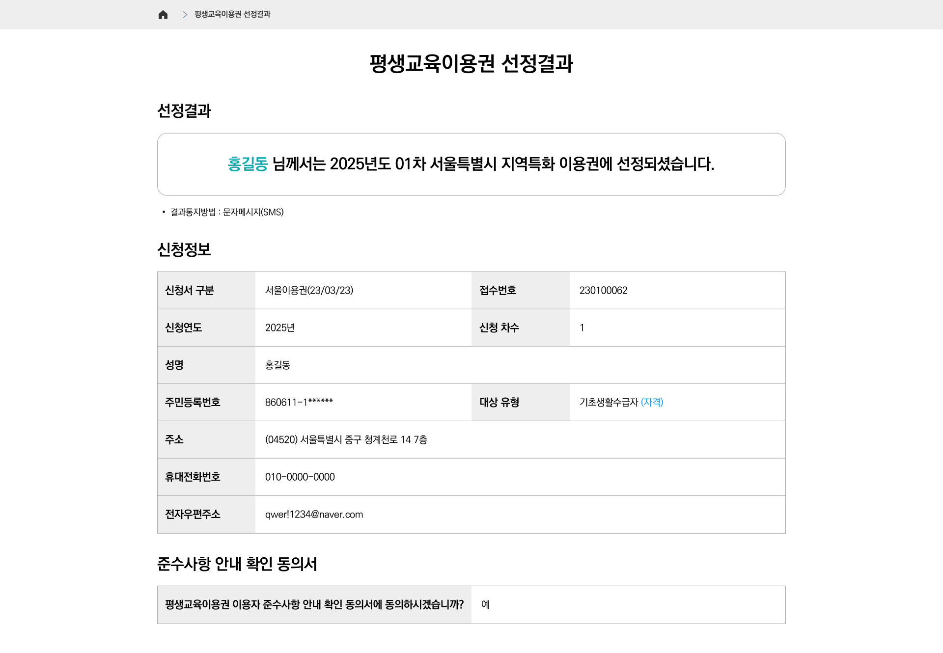 - 신청서 제출 및 서약 완료