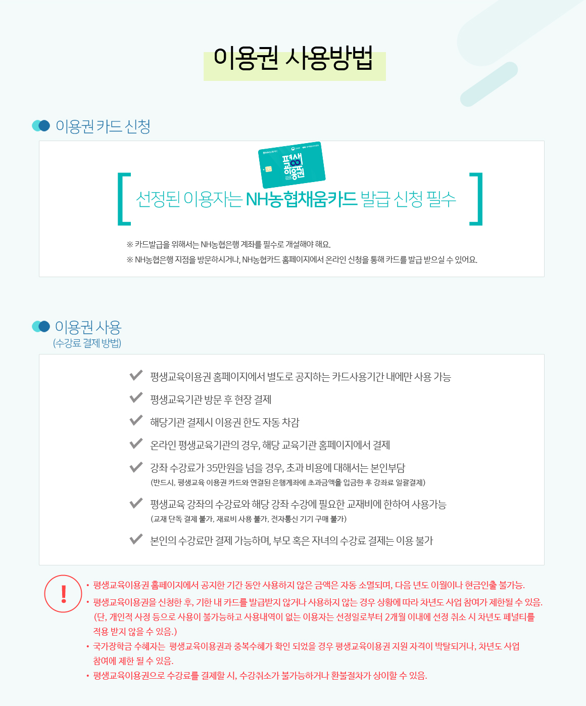 | 카드 이용 | NH농협카드 포인트 자동 차감 |