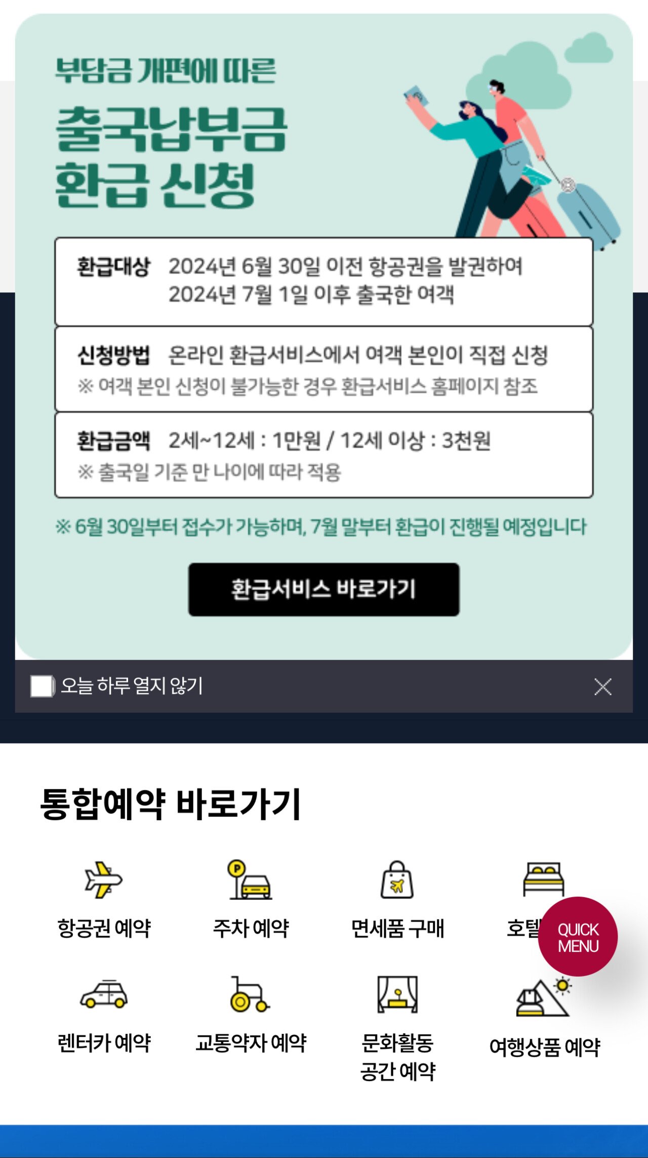 - 2024년 6월 30일 이전 발권 + 7월 1일 이후 출국 성인: 3,000원 환급