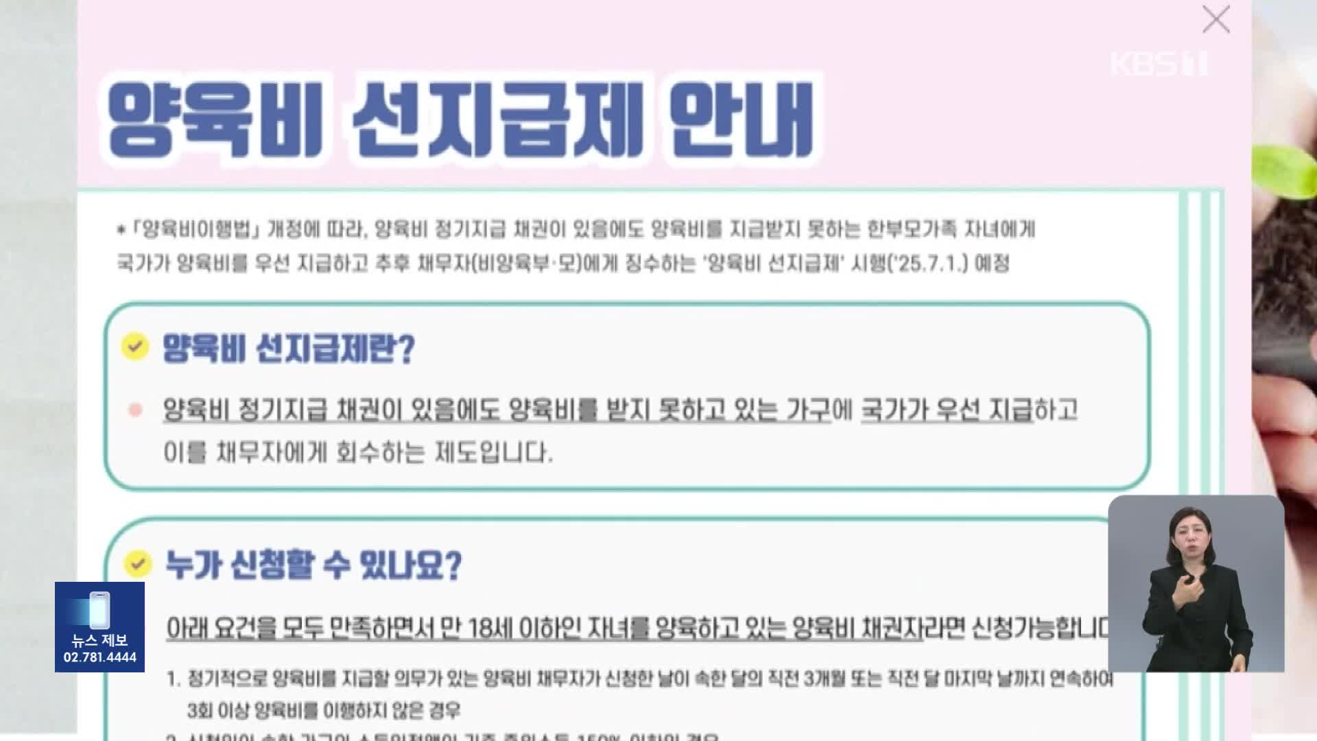 국가가 한부모 가정을 대신해 매달 20만 원의 양육비를 먼저 지급하고, 이후 비양육 부모에게 회수하는 제도입니다.