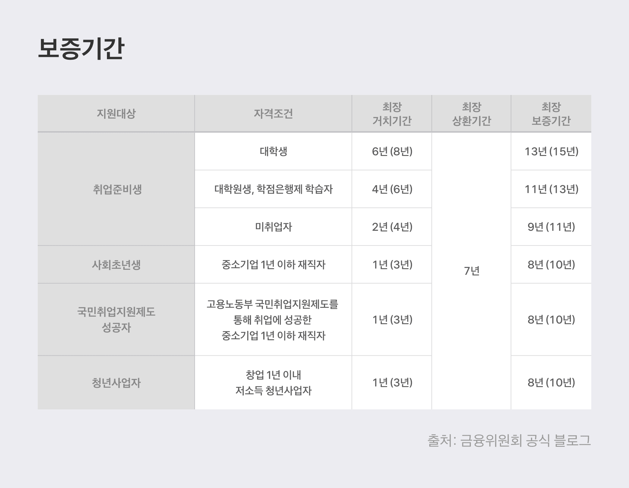 | 상환 방식 | 최장 8년 거치, 이후 7년 원금균등상환 |