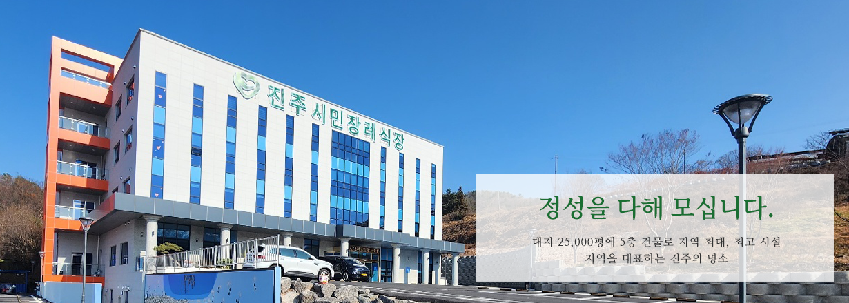 진주시민장례식장은 경상남도 진주시 문산읍에 자리잡고 있으며, 5층 규모의 대형 장례식장입니다. 문산 IC에서 바로 진입 가능한 교통의 요지에 있어, 멀리서 오는 조문객에게도 매우 편리한 접근성을 제공합니다. 건물 외관은 품위 있고, 내부 공간은 고인을 기리는 데 집중할 수 있도록 설계되어 있으며, 유가족 전용 객실에는 고급 침대와 휴식 공간이 마련되어 있어 긴 장례 기간 동안 지친 몸을 회복할 수 있습니다. 넉넉한 주차 공간은 물론이고, 커피숍, 편의점, 조문객 대기 공간 등 부대시설도 잘 갖춰져 있어 유가족과 조문객 모두에게 만족도를 제공합니다.