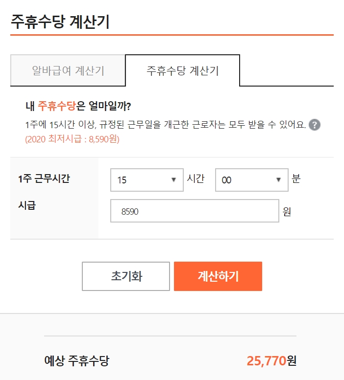 주휴수당 계산법 예시