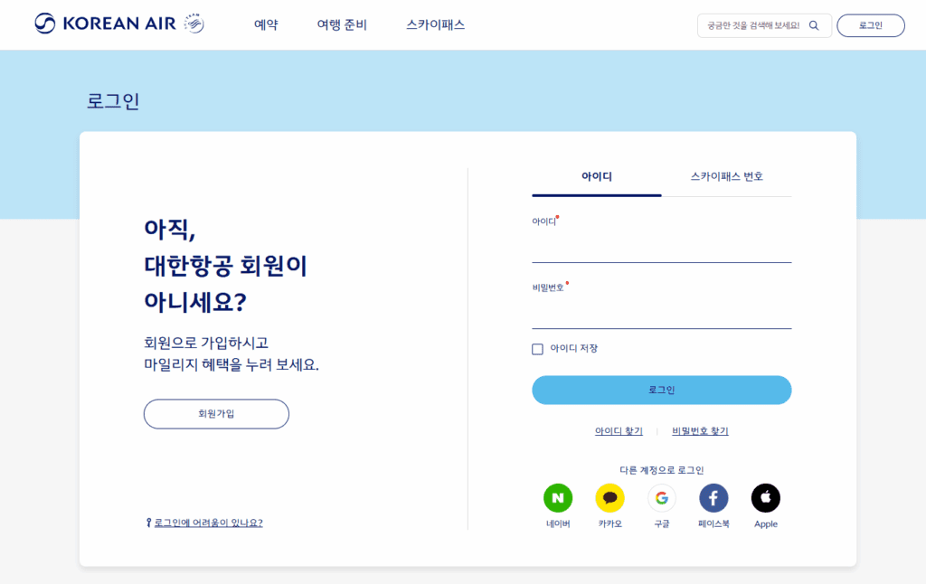 | 마일리지 적립 | 항공편, 제휴 카드, 제휴사 이용 등 |