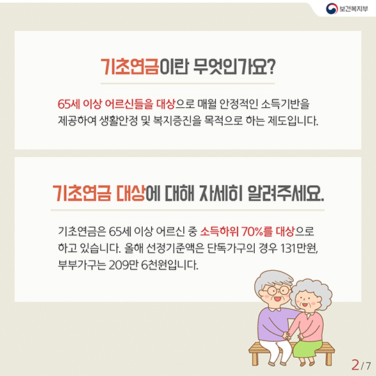 기본적인 생활을 유지할 수 있도록 도와주는 제도로, 2014년부터 시행되었으며, 매년 지급 금액과 기준이 조정되고 있어요.