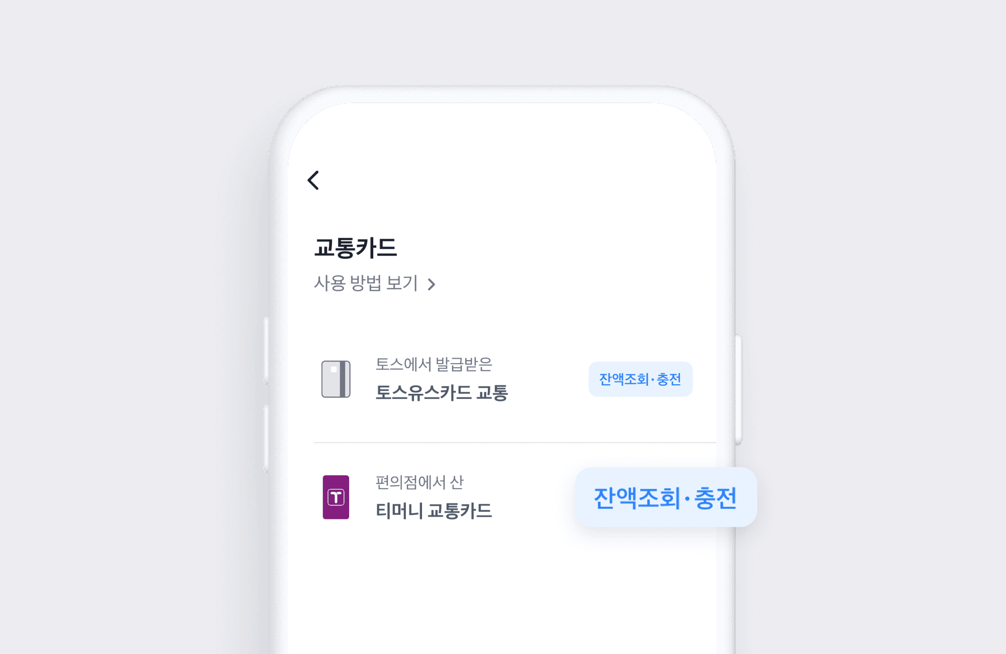 A. 토스 내 모바일 교통카드를 발급하면 실물 없이도 사용 가능합니다.