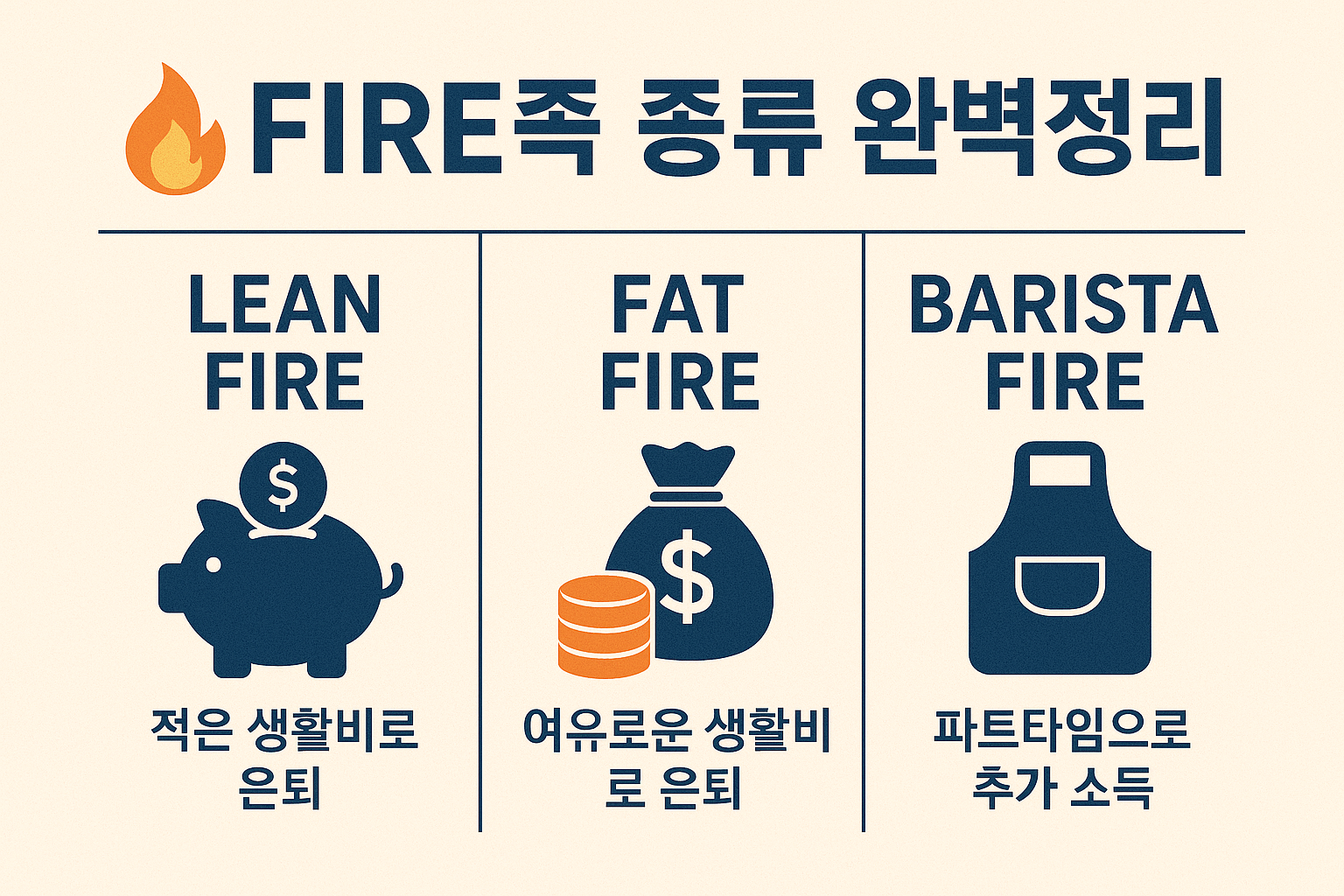 파이어족(FIRE: Financial Independence, Retire Early)은 경제적 독립을 통해 이른 시기에 은퇴를 꿈꾸는 사람들을 지칭하는 용어입니다. 하지만 파이어족이라고 해서 모두 같은 방식으로 은퇴를 준비하는 것은 아닙니다. 이번 글에서는 대표적인 파이어족 유형인 린 파이어(Lean FIRE), 패트 파이어(Fat FIRE), 바리스타 파이어(Barista FIRE)를 중심으로 그 특징과 차이점을 완벽하게 정리해 드립니다.