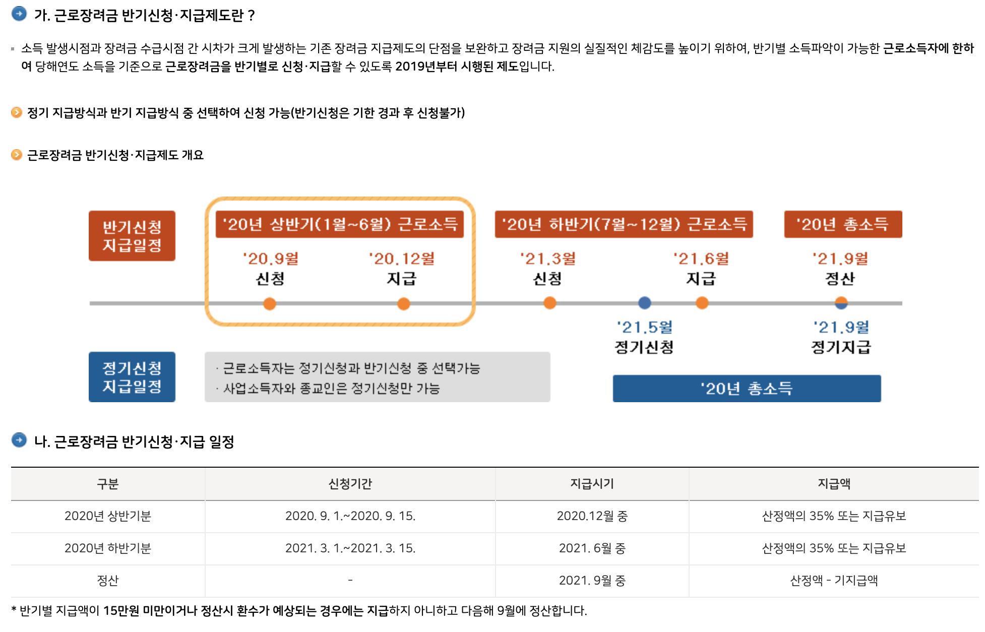 반기 신청자는 상·하반기 근로소득에 대해 분할 지급받는 방식입니다.