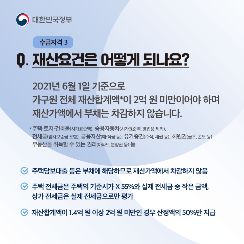 ✔ 재산 기준은 2억 원 미만